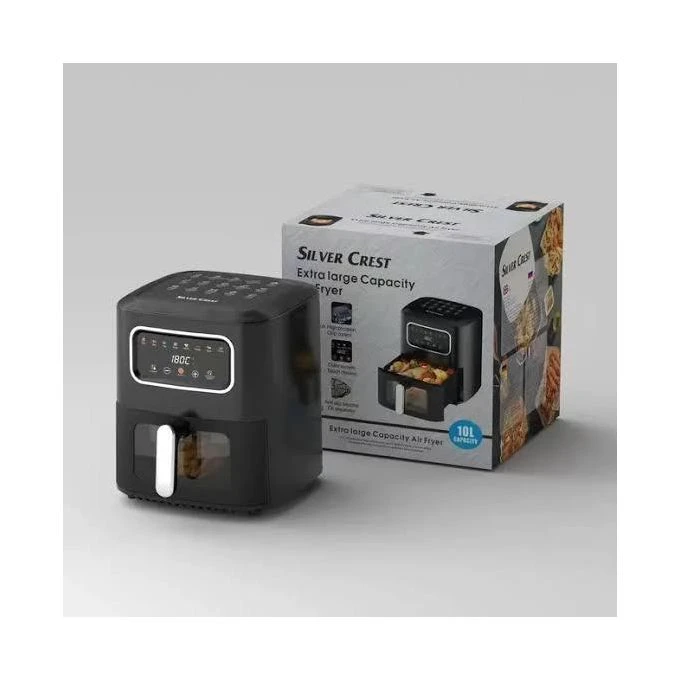 The Silver Crest 10L Digital Air Fryer helps you reduce up to 80% of your fat intake enabling you to fry food without the need of oil. It features rapid air technology, an adjustable temperature control and a 30 minute timer that helps you pre-set your cooking time. The Integrated air filter keeps your kitchen fresh and clean while parts of the air fryer are removable and dishwasher safe. Included is a recipe booklet to help you kick start your healthy cooking regime. Cooking deliciously is not enough anymore. Healthy cooking is the new life hack! This Air Fryer with Rapid Air Circulation Technology will be your new kitchen assistant with 80% fat free cooking even with deep fried food. Fry fish, chicken, meat or potatoes with this quick and easy Air Fryer in a jiff. Enjoy Oil-free toasting! Healthy eating lifestyle. Adjustable timer. Temperature control. Capacity: 10L High-power performance for fast cooking results . Easy to clean and creates less smell than normal fryers. Non stick |