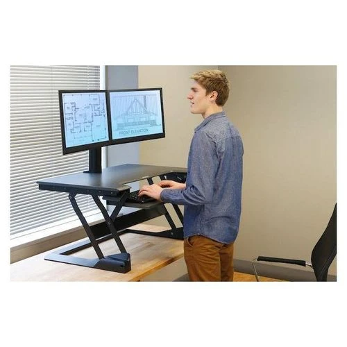 STURDY STRUCTURE】Ergonomic design standing desk. The solid structure keeps your desk riser steady and the maximum weight hold up to 30 lbs. 【MULTIPURPOSE】Our standing desk converter doubles as a rising desk and a workstation. It’s a great choice for expanding small spaces and can be used for offices and study rooms, etc. Plus, its adjustable height makes it easy for people of any shape and size to find a comfortable workstation 【Sit or Stand 】Adjustable workstation allows you to find that needed healthy balance between sitting and standing up throughout the day. 【Spacious Work Area】The top surface measures 31.5” x 15.7” providing plenty of space for single monitor, dual monitor, and laptop + computer monitor setups. Raises up to 19.8 inches and lowers down to 4.3 inches making this ideal for you no matter your height.