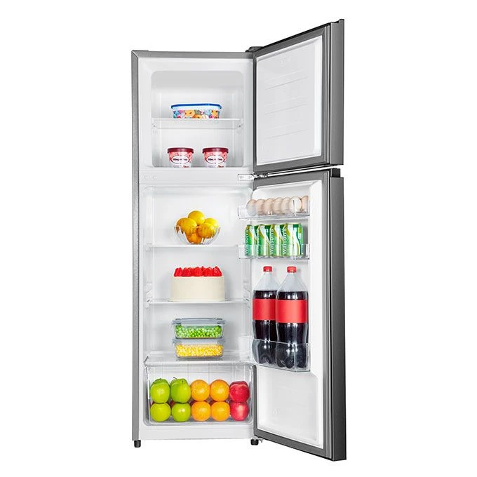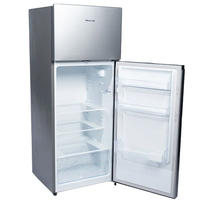 The Hisense 205 Liters Double Door Refrigerator - REF 205 DR has a storage capacity of 205 liters allows for storage of both small and large-sized food items. Some of its notable functions and features are: No Frost, Low Noise, Environment-Friendly Tech, Silver, R600 Gas With a capacity of 205 liters, this fridge can accommodate surplus food items and perishables. These food items can be kept fresh for as long as 4 days (100hours) even after a long stretch of a power cut. No Frost: The Hisense refrigerator features a No Frost system. This means that it uses advanced cooling technology to evenly distribute cold air throughout the refrigerator, preventing the formation of frost and ice. With the No Frost feature, you don't need to manually defrost the refrigerator, saving you time and effort. It also helps maintain consistent temperatures, preserves food freshness, and ensures efficient operation. Low Noise: The Hisense refrigerator is designed to operate with low noise levels. It incorporates advanced sound-dampening materials and noise reduction technologies to minimize operational noise. This feature provides a quiet and peaceful environment in your kitchen or living space, allowing you to go about your daily activities without any disturbances. Environment-Friendly Tech: The Hisense refrigerator incorporates environmentally friendly technology. It utilizes energy-efficient components and features that contribute to reducing energy consumption. This helps lower greenhouse gas emissions and promotes energy conservation. Additionally, the refrigerator may use eco-friendly refrigerants that have a lower impact on the ozone layer and global warming potential, promoting environmental sustainability. Lock Feature: The Hisense refrigerator is equipped with a lock feature. This allows you to secure the refrigerator with a key or lock mechanism, preventing unauthorized access to its contents. The lock feature is particularly useful if you want to restrict access to the refrigerator, such as in households with children or in shared living spaces. It provides an added layer of security and peace of mind. R600 Gas: The Hisense refrigerator utilizes R600 gas as the refrigerant. R600 (also known as isobutane) is an environmentally friendly and energy-efficient refrigerant. It has a low impact on the ozone layer and contributes to lower greenhouse gas emissions. By using R600 gas, the refrigerator reduces its environmental footprint and promotes sustainability. These personalized features in the Hisense refrigerator, such as the No Frost system, low noise operation, environment-friendly technology, lock feature, and the use of R600 gas, offer convenience, efficient cooling, quiet operation, enhanced security, and contribute to environmental sustainability. SpecificationsKey Features