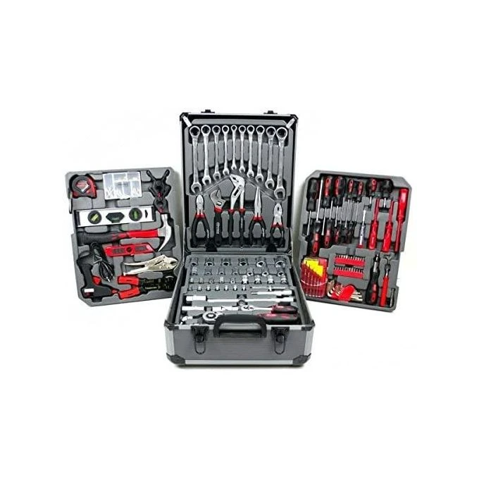 metal tools box kitset storage - trolley with chrome vanadium tools, electrical general tools mentainance Key FeaturesThis tool box kit has almost everything needed for any homeowner, car owner or professional repair person or contractor to accomplish everyday repairs and chores more efficiently. Included are more than 186 pieces of tools, such as pliers, wrenches, screwdrivers, test pencil, tyre gauge, hex keys, ratchet handle, kitchen scissors, insulation tape, and other small hardware ones. Designed with 4 removable boards and dual lock system, each tool will be organised neatly and safely in the toolbox. Therefore, it will be much easier and convenient to pick the one at times of need. Further, the built-in rolling wheels and adjustable handle allow you to take it anywhere you want without any constraint. What’s in the boxAssorted Tools That Make You Feel Okay |