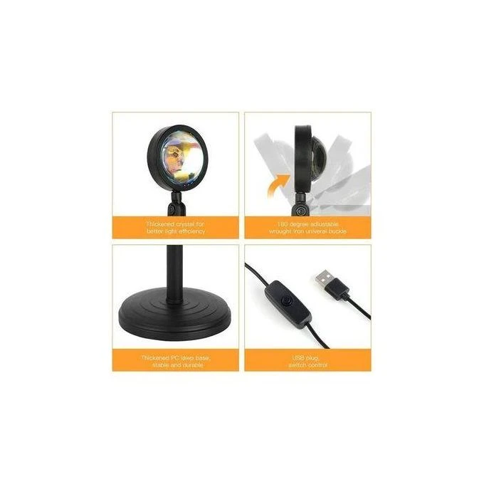 - 360°Angle Adjustable - Sunset Lamp contains 6.6ft long USB cable with switch, the head can be rotated 360 degrees, The size and shape of the halo can be adjusted by rotating the lamp head to meet your lighting needs.