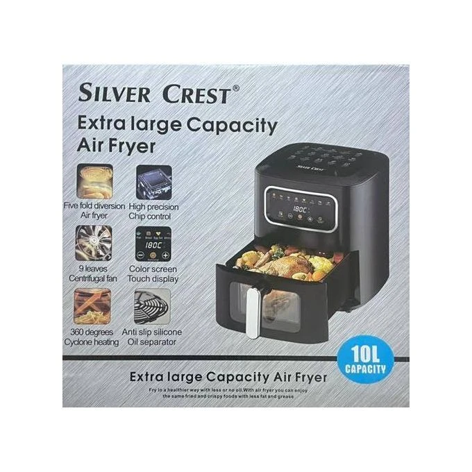 The Silver Crest 10L Digital Air Fryer helps you reduce up to 80% of your fat intake enabling you to fry food without the need of oil. It features rapid air technology, an adjustable temperature control and a 30 minute timer that helps you pre-set your cooking time. The Integrated air filter keeps your kitchen fresh and clean while parts of the air fryer are removable and dishwasher safe. Included is a recipe booklet to help you kick start your healthy cooking regime. Cooking deliciously is not enough anymore. Healthy cooking is the new life hack! This Air Fryer with Rapid Air Circulation Technology will be your new kitchen assistant with 80% fat free cooking even with deep fried food. Fry fish, chicken, meat or potatoes with this quick and easy Air Fryer in a jiff. Enjoy Oil-free toasting! Healthy eating lifestyle. Adjustable timer. Temperature control. Capacity: 10L High-power performance for fast cooking results . Easy to clean and creates less smell than normal fryers. Non stick |
