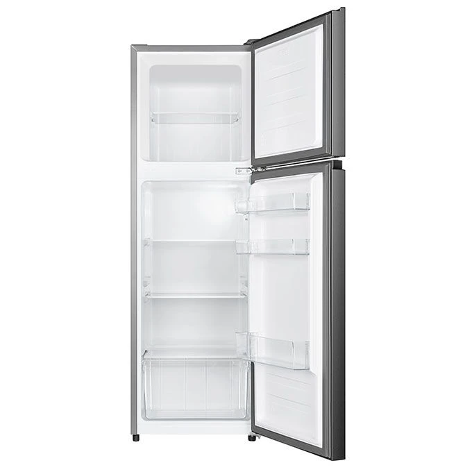 The Hisense 205 Liters Double Door Refrigerator - REF 205 DR has a storage capacity of 205 liters allows for storage of both small and large-sized food items. Some of its notable functions and features are: No Frost, Low Noise, Environment-Friendly Tech, Silver, R600 Gas With a capacity of 205 liters, this fridge can accommodate surplus food items and perishables. These food items can be kept fresh for as long as 4 days (100hours) even after a long stretch of a power cut. No Frost: The Hisense refrigerator features a No Frost system. This means that it uses advanced cooling technology to evenly distribute cold air throughout the refrigerator, preventing the formation of frost and ice. With the No Frost feature, you don't need to manually defrost the refrigerator, saving you time and effort. It also helps maintain consistent temperatures, preserves food freshness, and ensures efficient operation. Low Noise: The Hisense refrigerator is designed to operate with low noise levels. It incorporates advanced sound-dampening materials and noise reduction technologies to minimize operational noise. This feature provides a quiet and peaceful environment in your kitchen or living space, allowing you to go about your daily activities without any disturbances. Environment-Friendly Tech: The Hisense refrigerator incorporates environmentally friendly technology. It utilizes energy-efficient components and features that contribute to reducing energy consumption. This helps lower greenhouse gas emissions and promotes energy conservation. Additionally, the refrigerator may use eco-friendly refrigerants that have a lower impact on the ozone layer and global warming potential, promoting environmental sustainability. Lock Feature: The Hisense refrigerator is equipped with a lock feature. This allows you to secure the refrigerator with a key or lock mechanism, preventing unauthorized access to its contents. The lock feature is particularly useful if you want to restrict access to the refrigerator, such as in households with children or in shared living spaces. It provides an added layer of security and peace of mind. R600 Gas: The Hisense refrigerator utilizes R600 gas as the refrigerant. R600 (also known as isobutane) is an environmentally friendly and energy-efficient refrigerant. It has a low impact on the ozone layer and contributes to lower greenhouse gas emissions. By using R600 gas, the refrigerator reduces its environmental footprint and promotes sustainability. These personalized features in the Hisense refrigerator, such as the No Frost system, low noise operation, environment-friendly technology, lock feature, and the use of R600 gas, offer convenience, efficient cooling, quiet operation, enhanced security, and contribute to environmental sustainability. SpecificationsKey Features