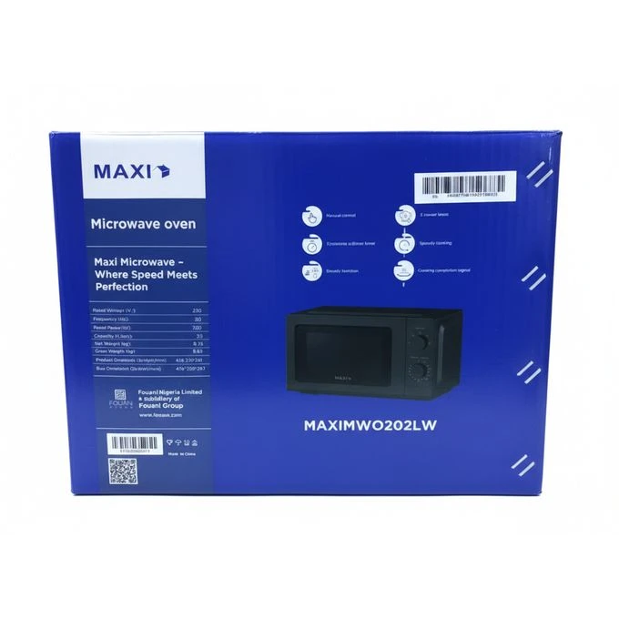 Enjoy fast, easy, and efficient cooking with the Maxi 20Ltr Manual Microwave Oven (MAXIMWO20CKE). Designed with simplicity and functionality in mind, this compact 20-liter microwave is perfect for everyday heating, defrosting, and basic cooking needs. Key Features: