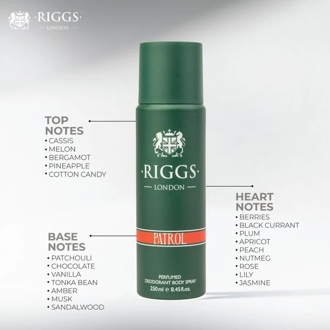 Unleash your adventurous side with Riggs London Patrol Body Spray, designed for the bold, confident man. This energizing deodorant delivers a fresh, masculine scent that lasts all day, keeping you cool and confident no matter where life takes you. Formulated to leave no white marks or yellow stains, Riggs Patrol keeps your clothes spotless and your skin comfortable. Its alcohol-free formula is gentle, making it perfect for everyday use and suitable for sensitive skin. Packaged in a sleek 250ml spray can, it’s your ideal daily companion for work, travel, or outdoor adventures. Key Features: Long-lasting, masculine fragrance No white marks or yellow stains Alcohol-free and skin-friendly Ideal for active, modern men Perfect for everyday freshness Riggs London Patrol – Stay fresh. Stay confident. Conquer your day. Key FeaturesEnergizing, masculine fragrance that lasts all day No white marks or yellow stains on clothes Alcohol-free and gentle on sensitive skin Ideal for active and modern lifestyles Keeps you feeling fresh, clean, and confident Suitable for everyday use Volume: 250ml Riggs London Patrol – For the man who lives boldly and stays fresh always. |