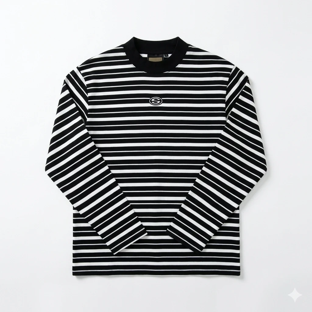 Elevate your daily rotation with a piece that balances retro sportiness and modern minimalism. The Evergreen Heritage Striped Mock-Neck is designed for those who appreciate clean lines and a structured silhouette. Featuring a rich pine-green base accented by crisp, horizontal cream stripes, this long-sleeve tee brings a sophisticated edge to casual dressing. Key Features • Premium Mid-Weight Cotton: Crafted for a soft hand-feel with enough structure to maintain its shape throughout the day. • Refined Mock-Neck: A slightly raised collar provides a modern look that sits higher than a traditional crew-neck, perfect for layering. • Micro-Embroidered Detail: A subtle, minimalist emblem is centered on the chest for a touch of understated branding. • Tailored Comfort: Designed with a contemporary fit that is relaxed through the body but clean at the shoulders. Styling Tip The deep forest tones pair exceptionally well with light-wash denim for a classic weekend look, or can be tucked into charcoal trousers for a more polished, "smart-casual" aesthetic. |