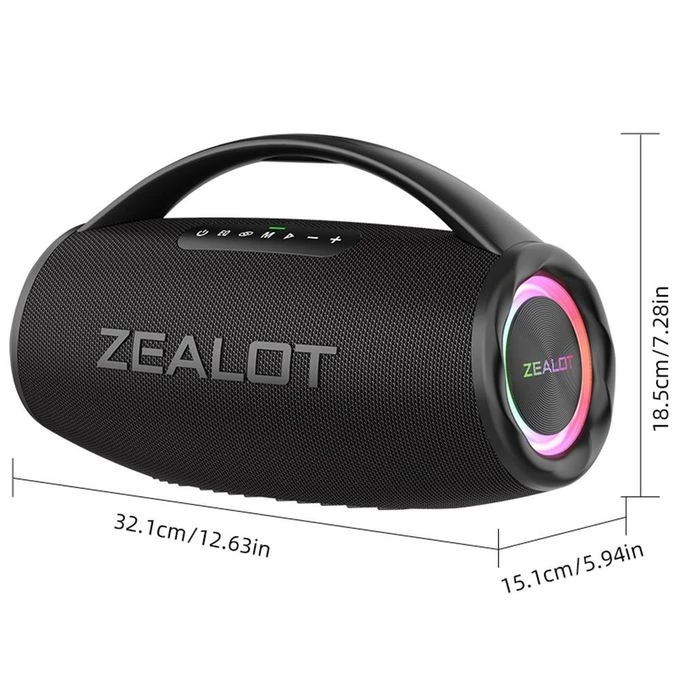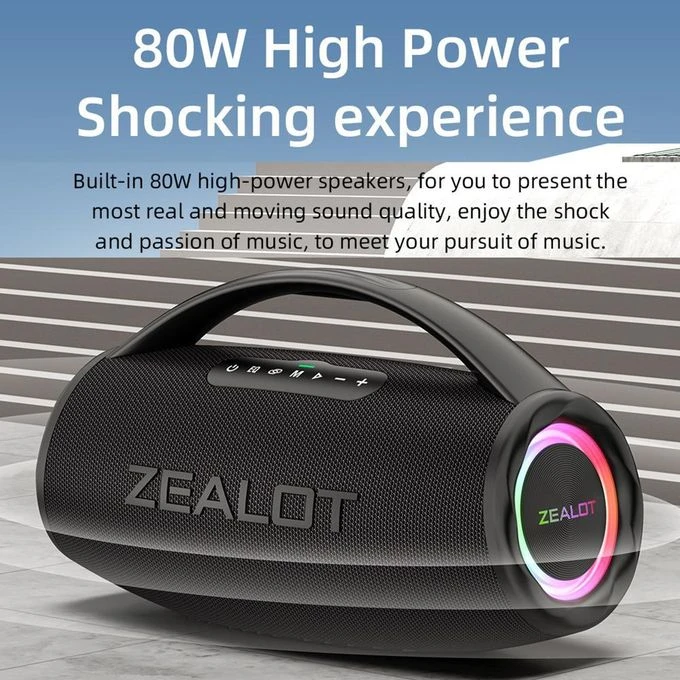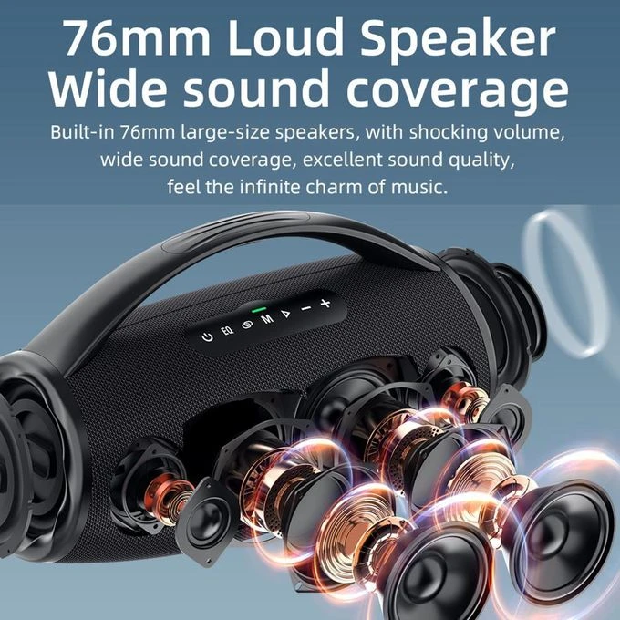 Specifications: Color: Black Material: ABS Battery: 16000mAh Loudspeaker: 76mm Output Power: 80W Standby Time: 30+ Days BT Type: 5.2 Item Size: 321 * 185 * 151mm/12.64 * 7.28 * 5.94in Item Weight: 2800g/98.77oz Package Size: 350 * 215 * 180mm/13.78 * 8.46 * 7.09in Package Weight: 3400g/119.93oz Key Features
